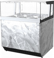 - Широкий спектр рабочих температур. Режимы до 240°С. Внутри витрины возможно, как кратковременное хранение первых (вторых) блюд, выпечки и десертов, так и долговременное поддержание блюд в горячем состоянии.