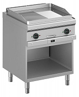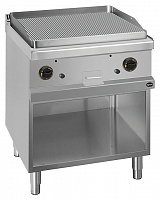 Корпус, как правило, изготавливают из обычной стали, а саму поверхность — из чугуна или углеродистой стали не тоньше 12 мм. Это придает оборудованию прочность и предохраняет от повреждений при работе с посудой. На рабочей зоне есть желоб для сбора жидкости, выделяемой при готовке, а для того, чтобы было проще это очищать, предусмотрены съемные лотки. Рифленые поверхности обрабатываются паром для удаления жира, который может скапливаться в бороздках.