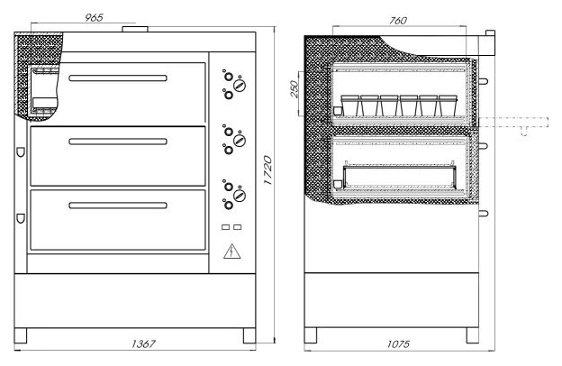 ​Расположение органов управления относительно пекарных камер: справа